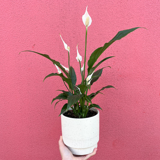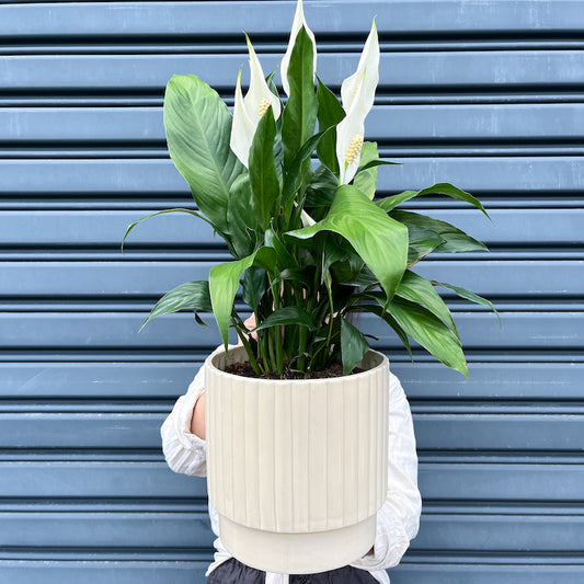 The spathiphyllum - more commonly referred to as the peace lily - is an indoor plant that requires filtered indoor light and a light water spray once a week. Available in a range of sizes, our Peace Lily plant comes in a ceramic pot with ribbon. The perfect no-fuss gift for a loved one - or for yourself! Flowers Alley have you covered for peace lily plant delivery in Melbourne!