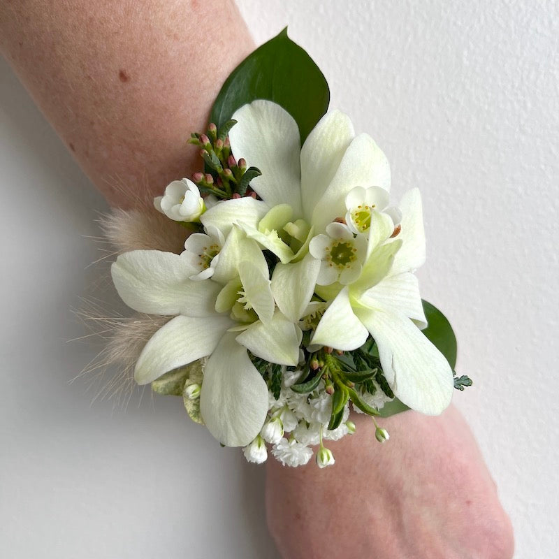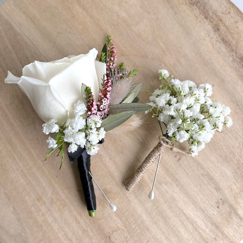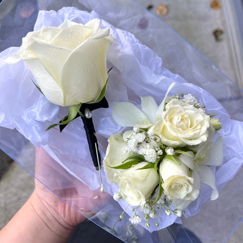 Make your school formal even more special with our stunning flowers! Our buttonhole flowers and wrist corsages are the perfect match to complete your look. Features white roses, seasonal flowers, and a touch of greenery. As a trusted Melbourne florist, we'll make sure your flowers are of the highest quality for your special night.