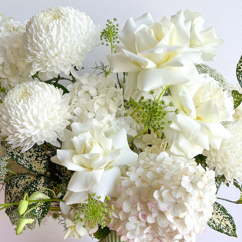 Our locally grown hydrangeas are back in full bloom! Shades of pink, crisp white, and soft lilac tones.
