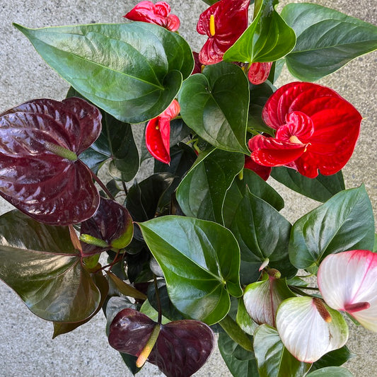 Anthuriums prefer bright, indirect light and well-draining soil. Water when the top inch of soil feels dry, and mist the foliage regularly to maintain humidity.