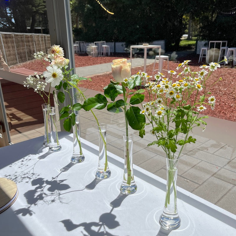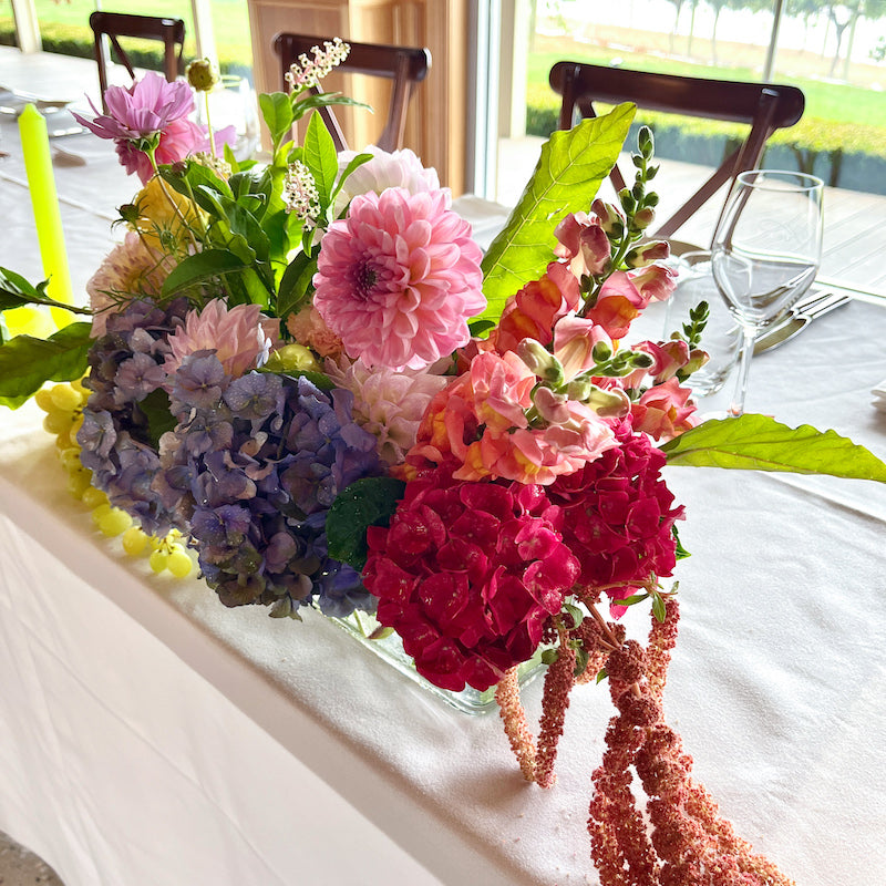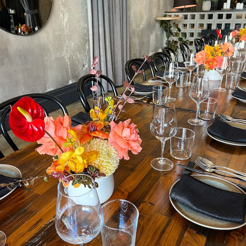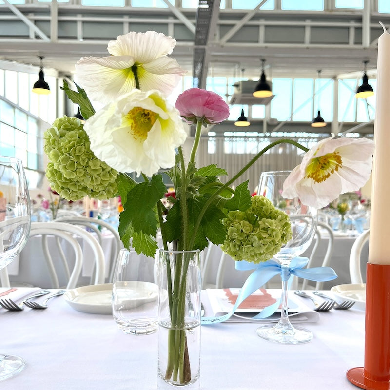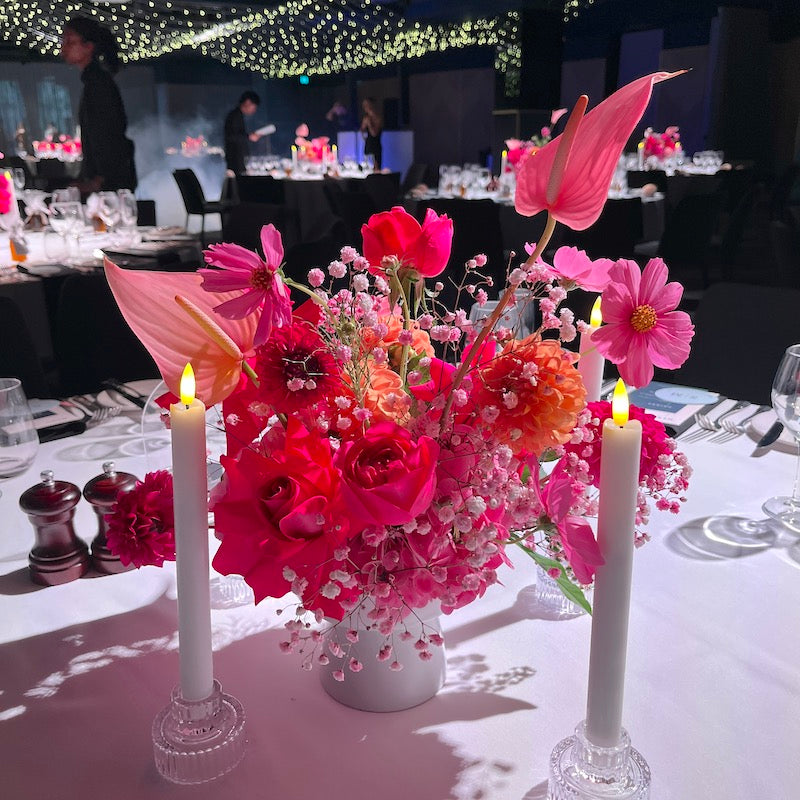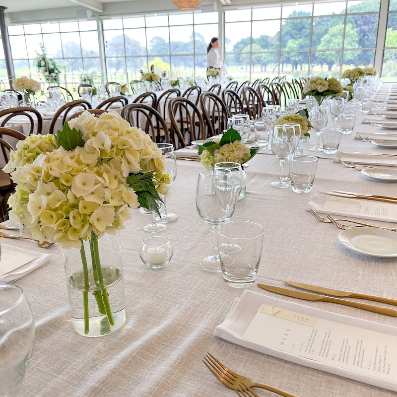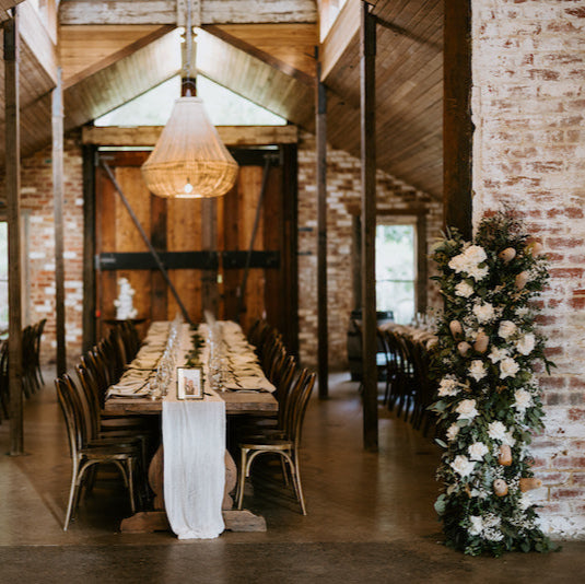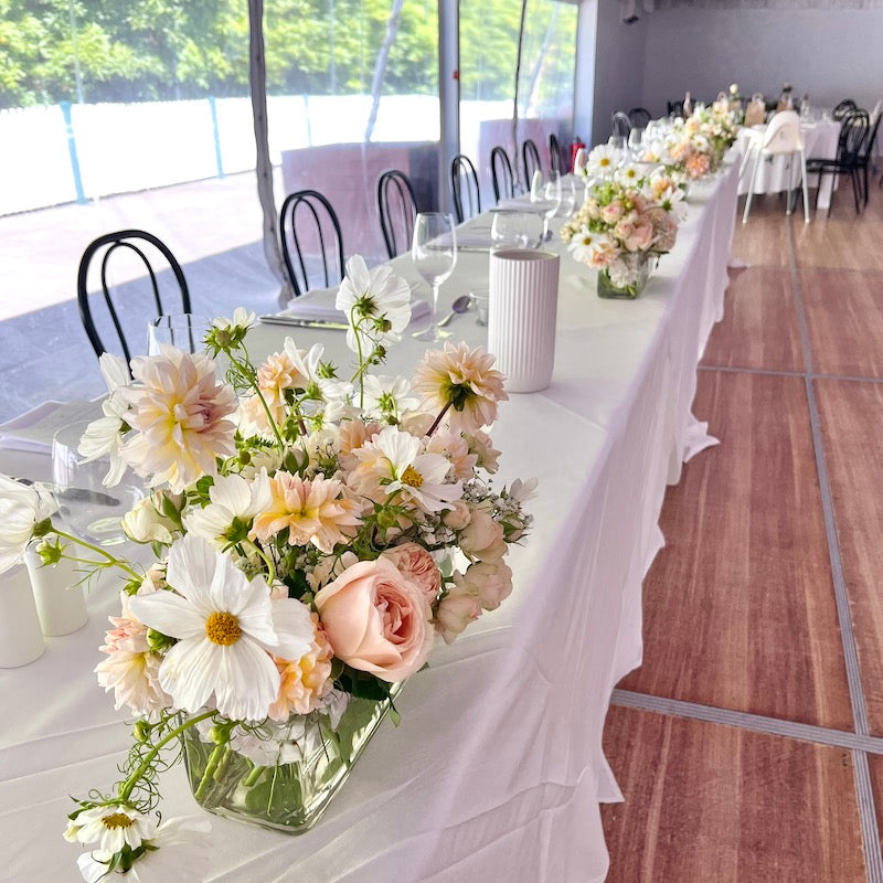 Table arrangements can be classically arranged in vases, or you might like to incorporate heaps of foliage directly on the table, or raised centrepieces, or… the list goes on!