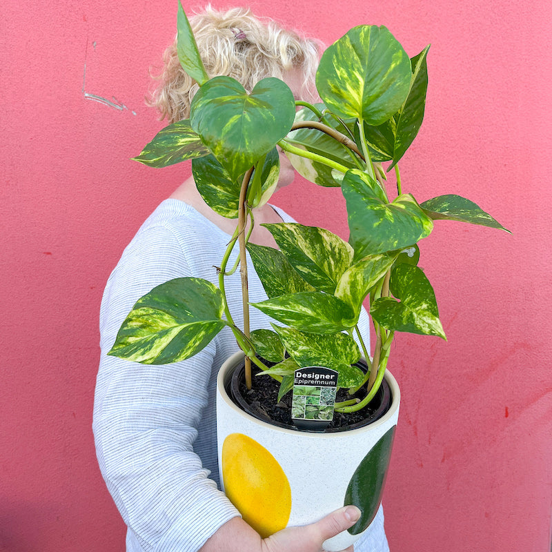 Transform your indoor space with the stunning Epipremnum Devil's Ivy Espalier. Its eye-catching leaves add a touch of greenery while its climbing ability brings a unique element to any room. Easy to grow and low maintenance, this house plant is guaranteed to stay green and liven up any space!